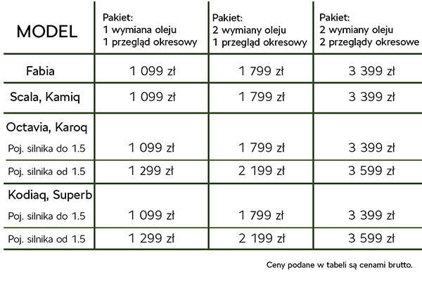 W naszej ofercie znajdziecie Państwo pakiety ŠKODA Care, dzięki którym zyskujecie gwarancję naprawy samochodu w przypadku usterki lub awarii części objętej umową oraz dodatkowo przeglądy okresowe (w pakiecie Premium Care - robocizna, oryginalne części i materiały eksploatacyjne, zgodne z planem